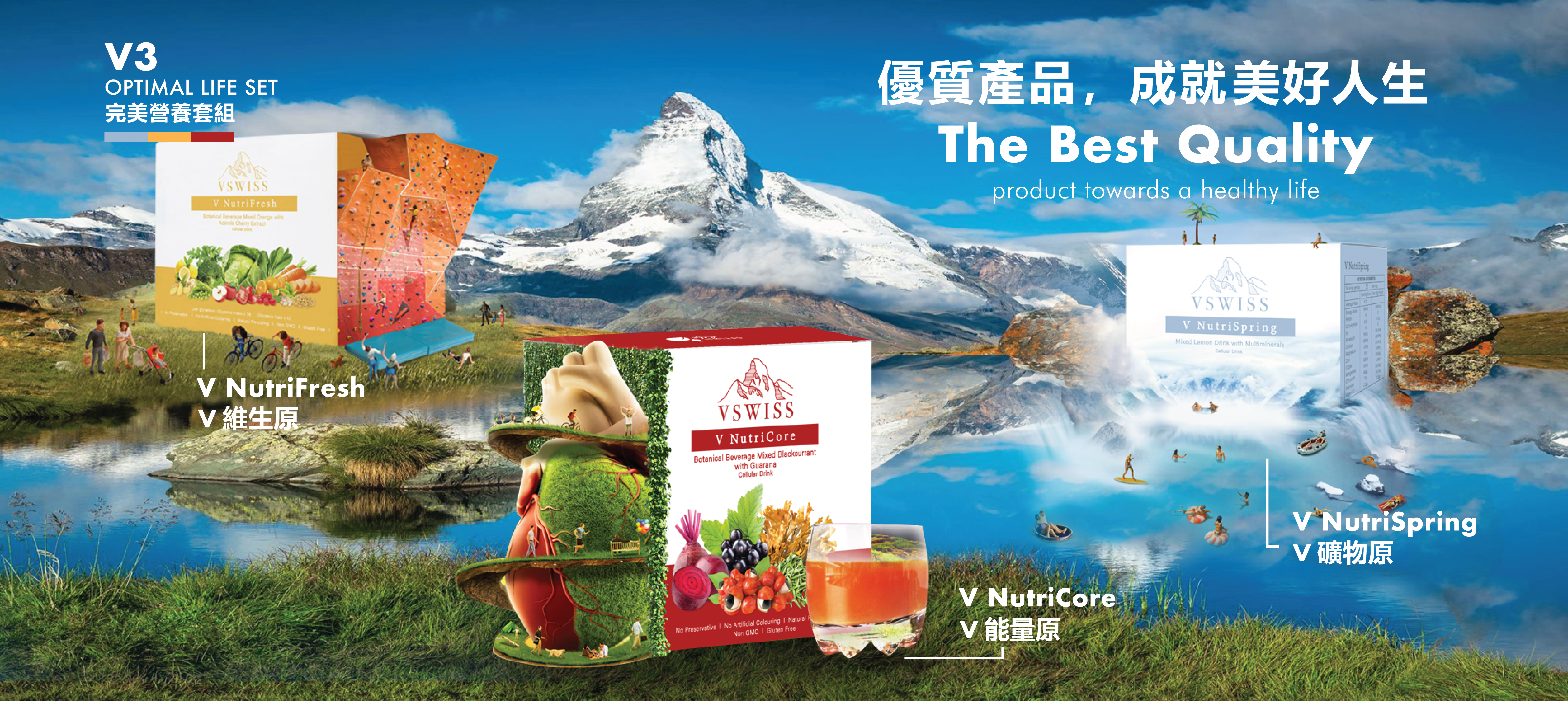 In V SWISS, we treat everyone like our partner, partner means our most valuable assets no matter you are employees, distributors or customers. We provide high quality products with excellent sales services. Our unique business and marketing plan that allow everyone to have the opportunity to achieve their life goal. Our commitment is to help all our partner live in better life.